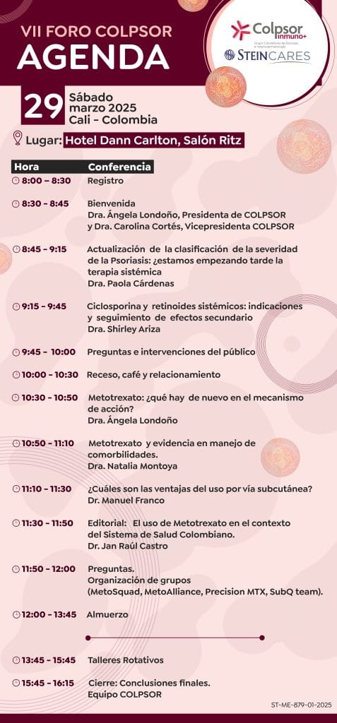 Organizado por SteinCares y COLPSOR, este evento será el punto de encuentro para los profesionales interesados en el manejo sistémico convencional de la psoriasis.